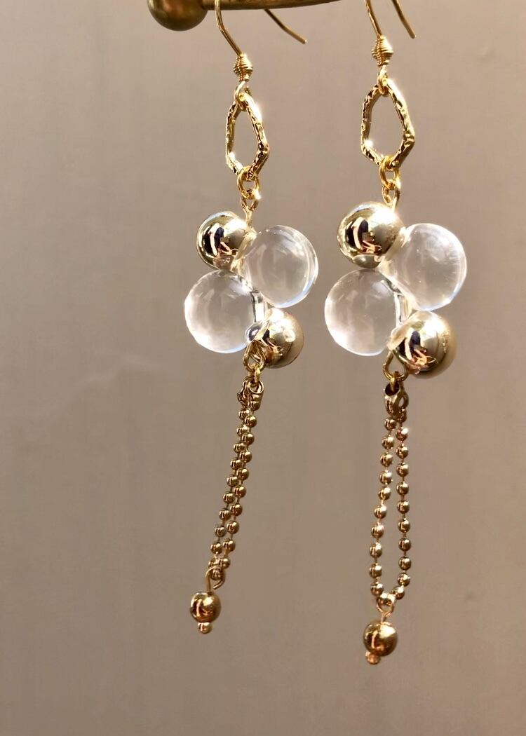 ゴールドとクリアーのビーズがまるで四葉のクローバーのような形に☆