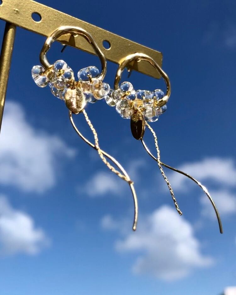 クラゲをモチーフにしたゆらゆら揺れるピアスです。