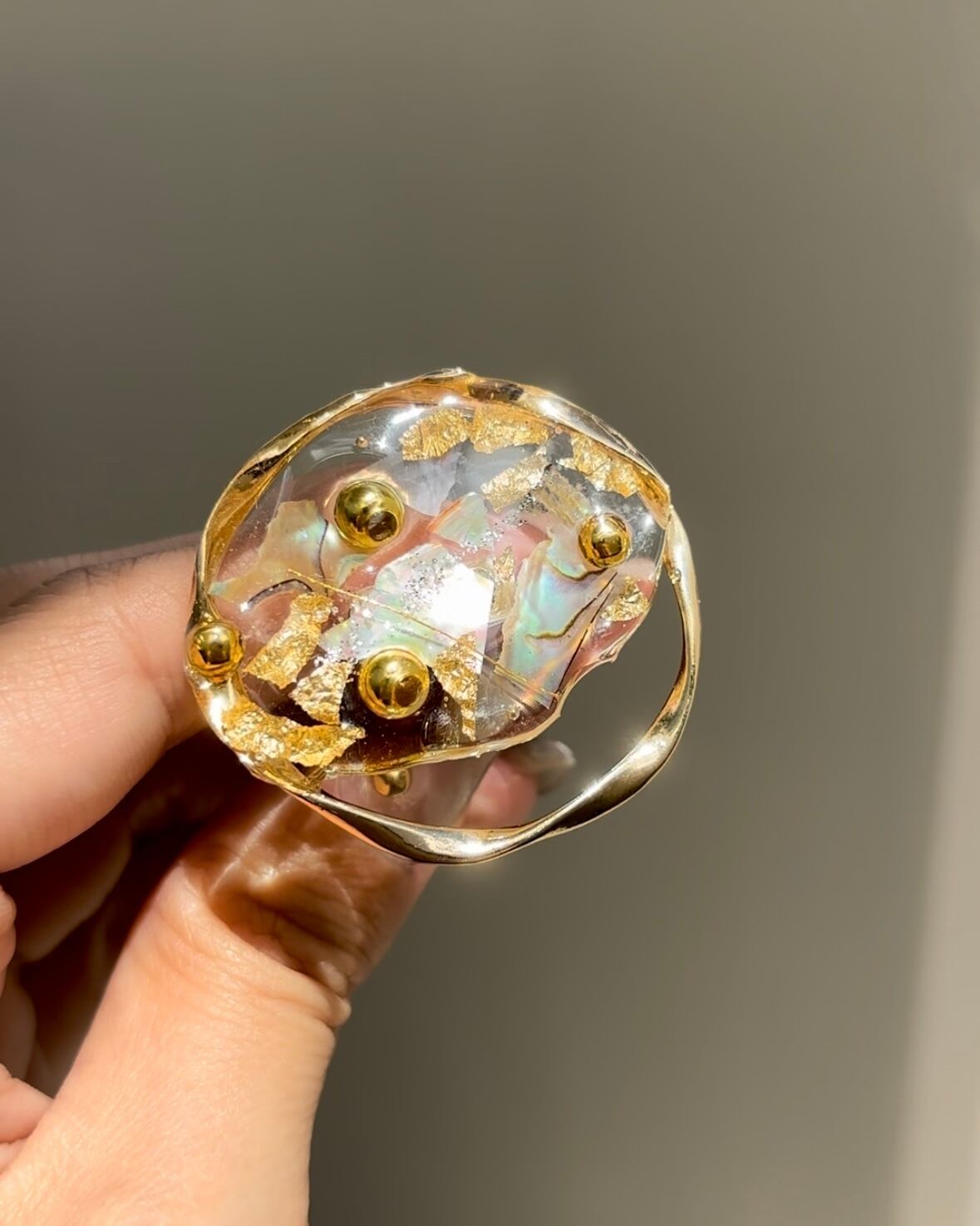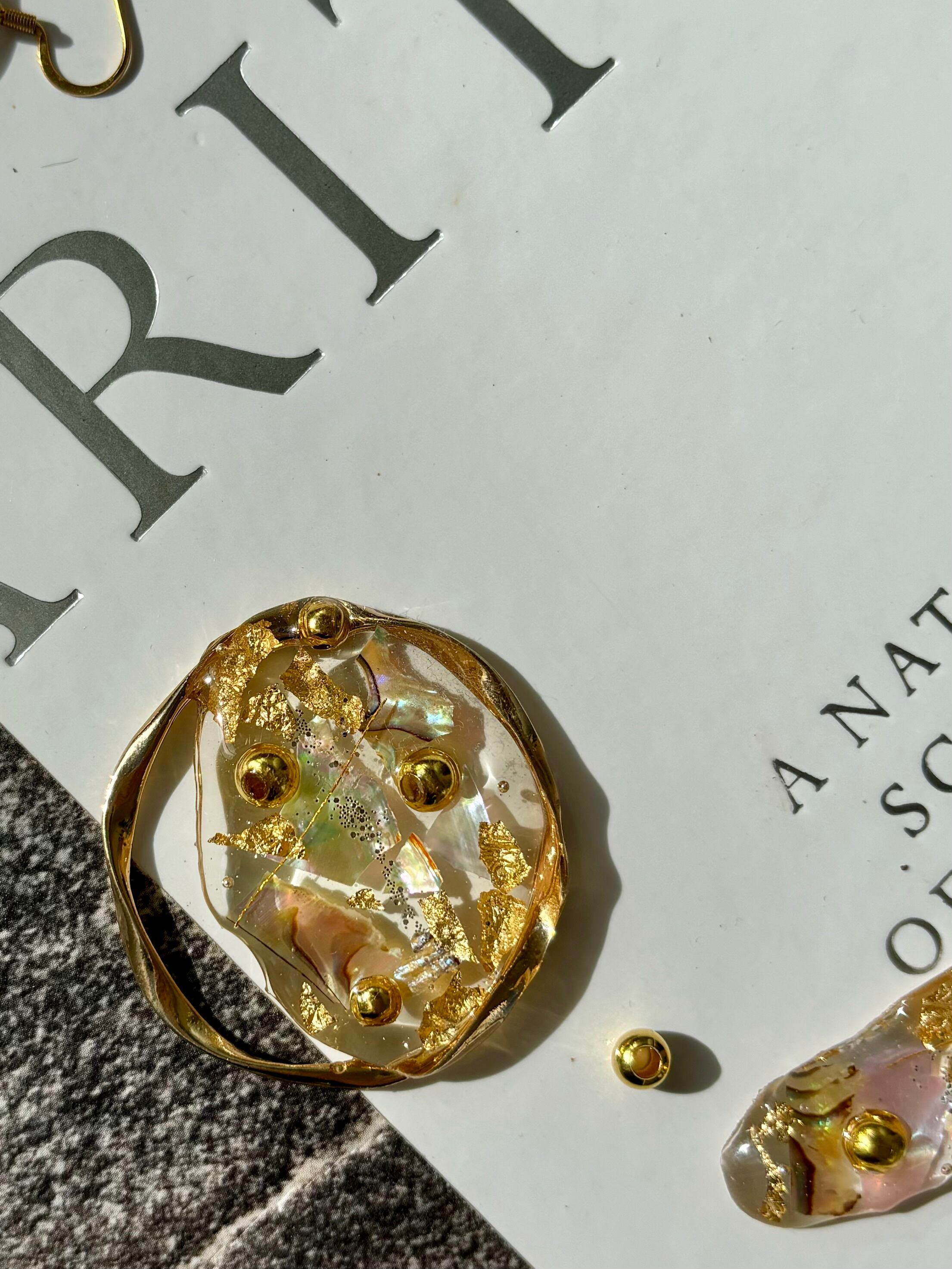 透明感のあるシェルと輝くゴールドパーツが絶妙にマッチした、グラノーラポニーフック/ヘアゴム。