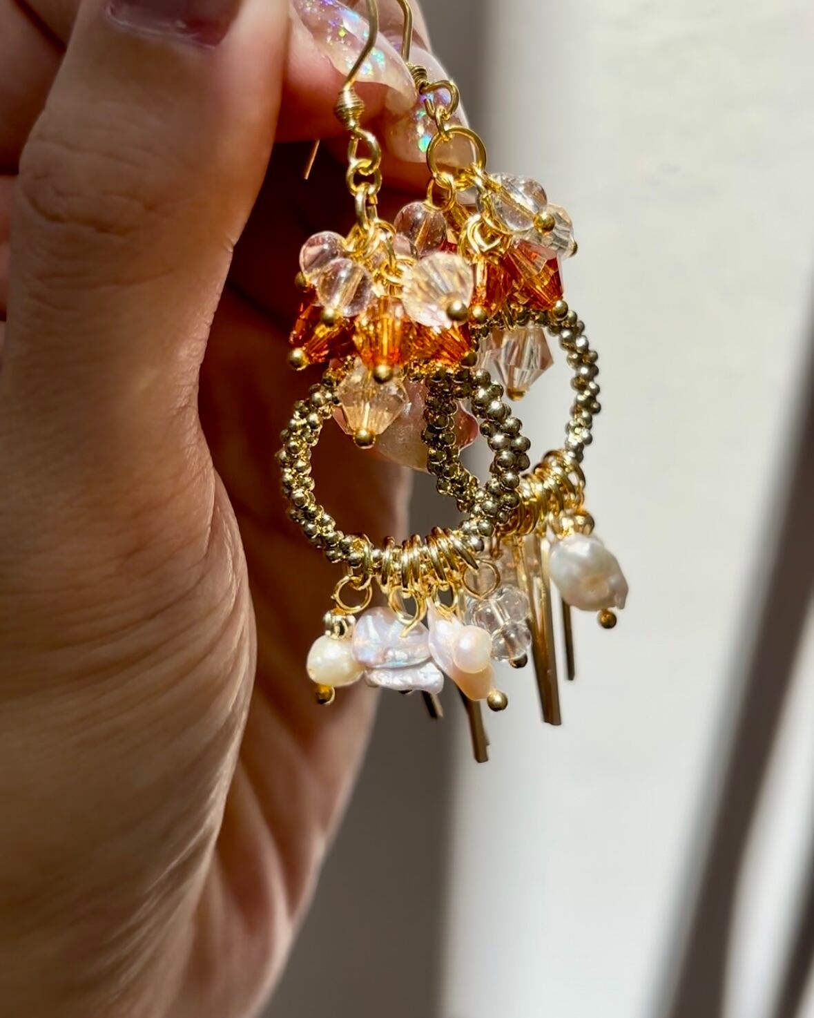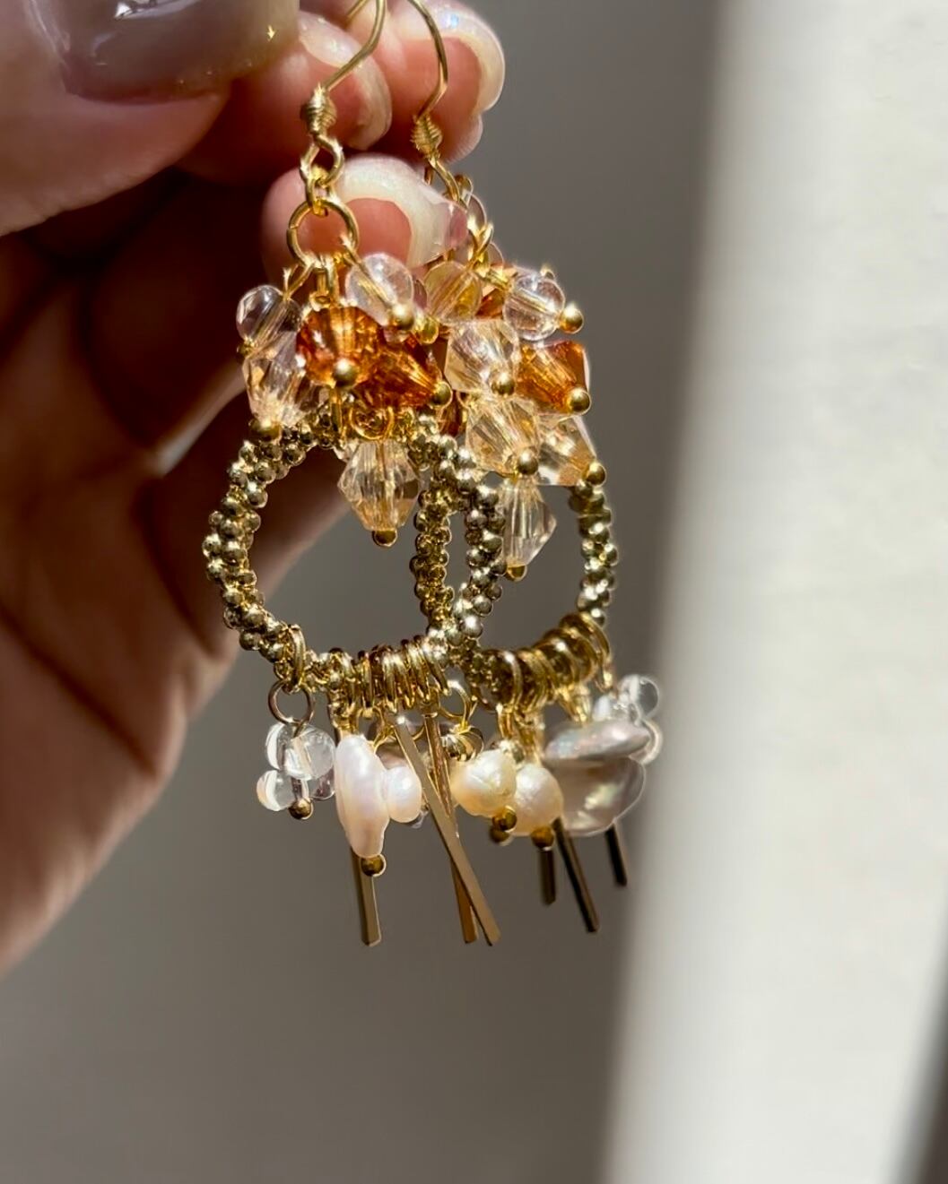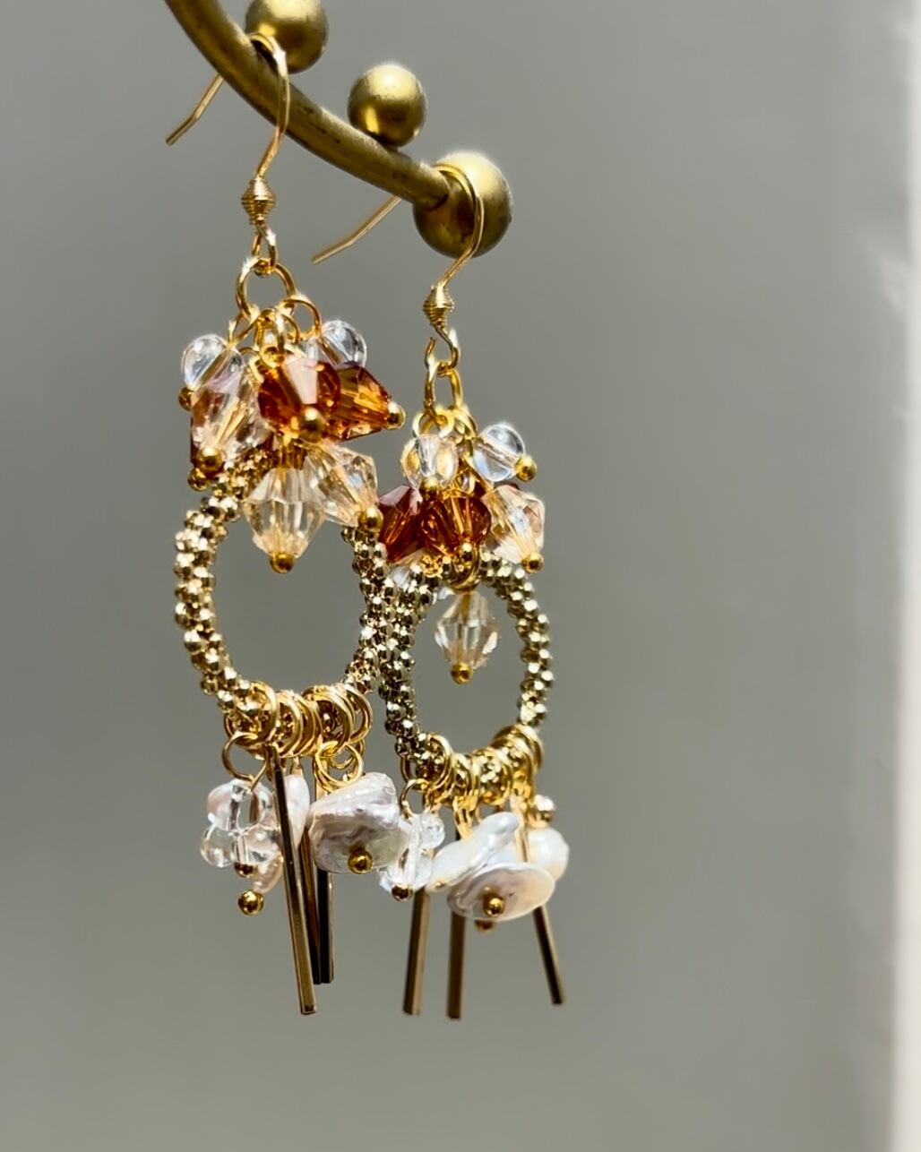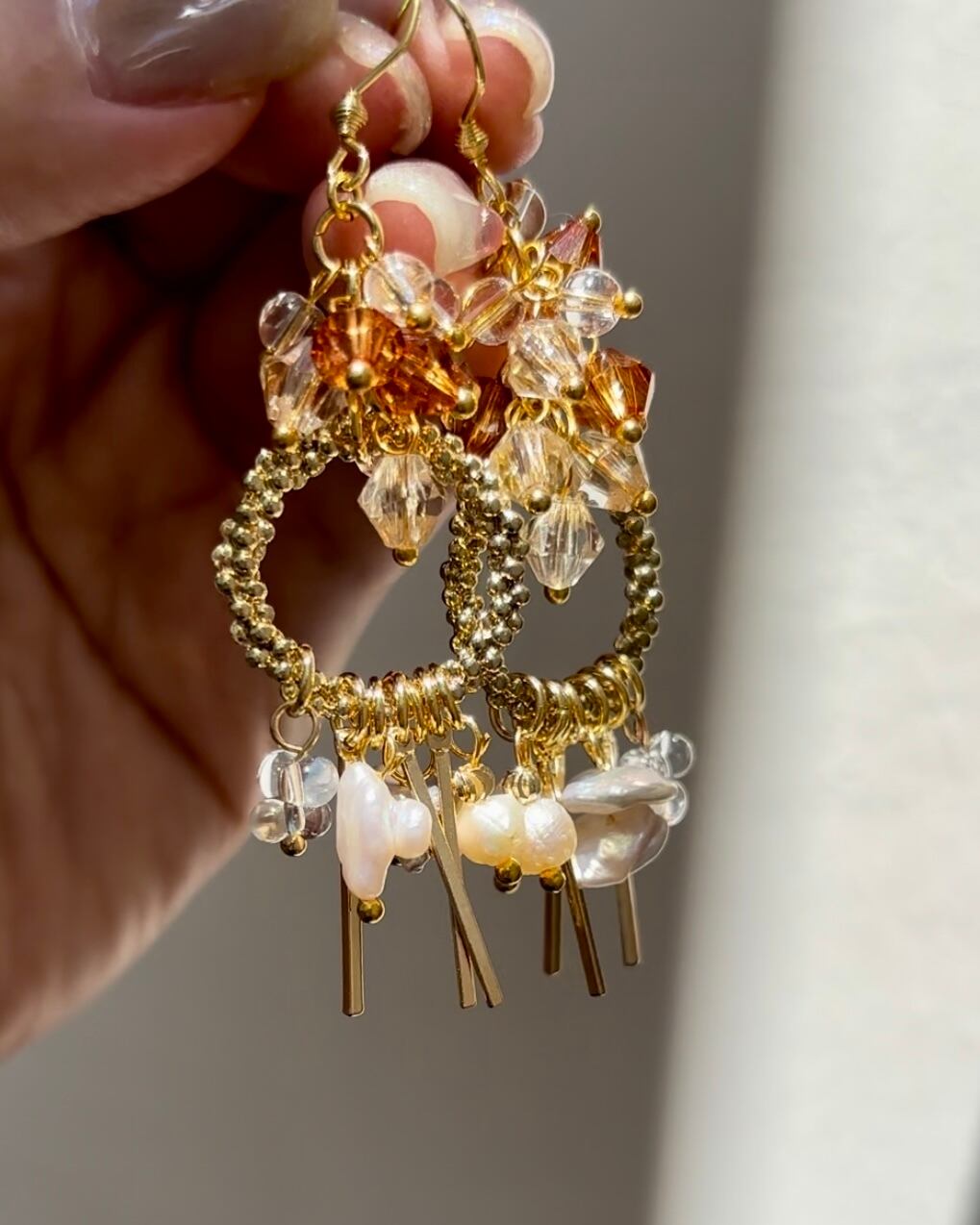 耳元で揺れる淡水パールが動くたびに光を反射し、華やかさを引き立てます☆